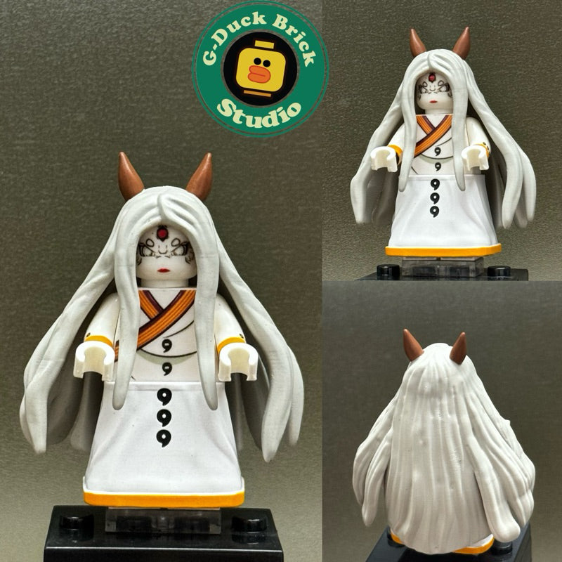 Step into the origins of the ninja world with our custom Kaguya Ōtsutsuki minifigure – the legendary mother of chakra and the final antagonist in the Naruto Shippuden series. First appearing in Episode 460 (anime) and Chapter 678 (manga), Kaguya’s awakening marks the peak of the Fourth Great Ninja War. Her flowing white robe, iconic horned hair, and Rinne Sharingan are recreated in stunning detail, capturing her celestial power and eerie presence.