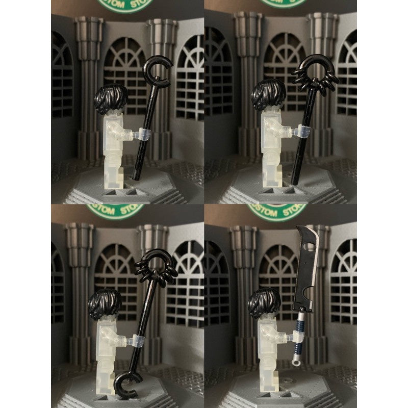 Description: Custom Minifigure accessories made from durable resin plastic, designed to be rigid and resistant to breaking. Perfectly fits with Minifigures from various brands, including WM and others.