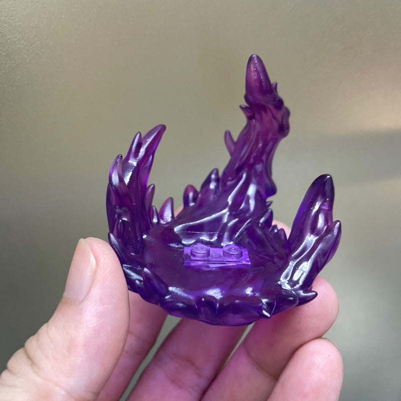 Crafted from translucent purple resin, the Display Stand V2 features sharp, flame-like effects that surround and lift your minifigure, creating the illusion of a powerful energy surge. Whether you're displaying warriors, heroes, or mystical beings, this base adds dramatic flair and motion to your collection.